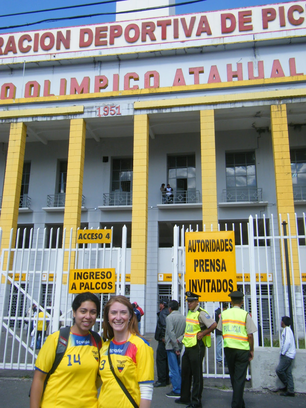 Clearly fútbol one of the most important things in Latin American culture! So I of course had to go see the Ecuadorian national team play at the Olympic stadium in Quito. The game was Jamaica vs. Ecuador, and honestly the stadium was a bit empty because the game was expected to be an easy win for Ecuador. We bought some pretty sweet jerseys outside the stadium for $5 and I got to hear the Ecuadorian national anthem for the first time, which sounds a bit like a theme song to a Dr. Seuss movie. During the game we snacked on empanadas, popcorn, and beer. At the half they set off a display of red, blue, and yellow smoke bombs to replicate the Ecuadorian flag.